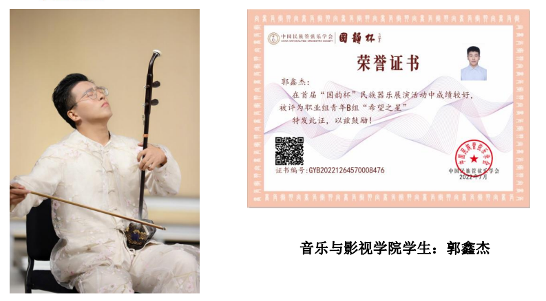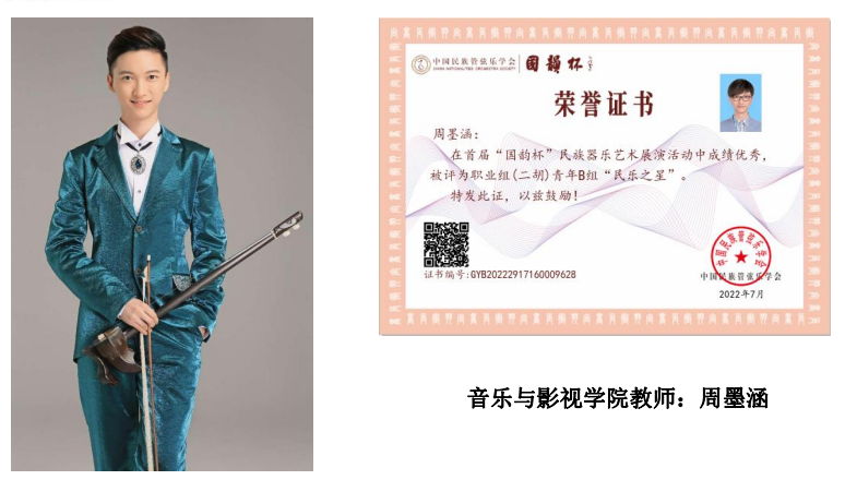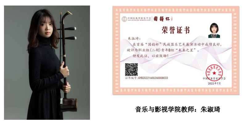 动漫花园 音乐系师生积极备赛,紧锣密鼓地进行参赛作品录制。经过激烈角逐,最终我校师生喜获六项国家级奖项。其中,周墨涵、江逸两位老师获得职业组青年B组“民乐之星”,并入选“中国民族管弦乐学会优秀民乐人才扶持计划”;赵欣彤、朱淑琦两位老师获得职业组青年B组“未来之星”;18级学生郭鑫杰、21级学生黄梓涵获得职业组青年B组“希望之星”