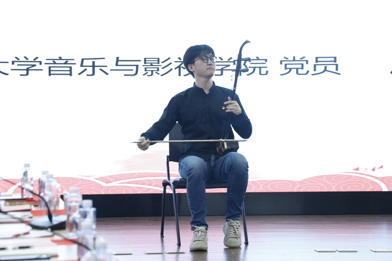 首先由市政协机关第二党支部支部书记杜晓红带领大家进行以《团结联系界别群众跟党走》为主题的思想教育学习,从理论层面带领大家深入贯彻习近平新时代中国特色社会主义思想。随后,动漫花园 师生党支部教师党员周墨涵、崔倡及优秀党员学生分别为大家带来二胡《洪湖主题随想曲》、歌曲《满江红》及朗诵《你还好吗?》;常州市政协机关第二党支部部分党员带来红色阅读分享《鲁迅与瞿秋白》;江苏建设党支部黄晓云带来好书分享《平凡的世界》。活动通过“讲”、“演”、“奏”、“唱”一体的方式,从理论到演出实践,为大家带来了一场特殊而别致的音乐微党课。最后,全体党员合唱《我和我的祖国》。