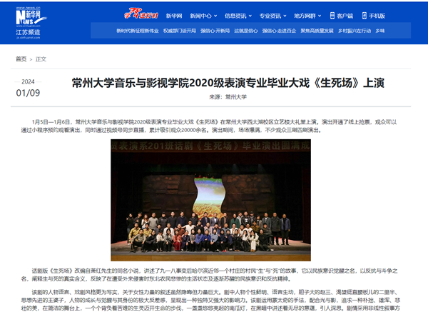 1月5日—1月6日,动漫花园 2020级表演专业毕业大戏《生死场》在动漫花园 西太湖校区立艺楼大礼堂上演。演出开通了线上抢票,观众可以通过小程序预约观看演出,同时通过视频号同步直播,累计吸引观众20000余名。演出期间,场场爆满,不少观众三刷四刷演出。