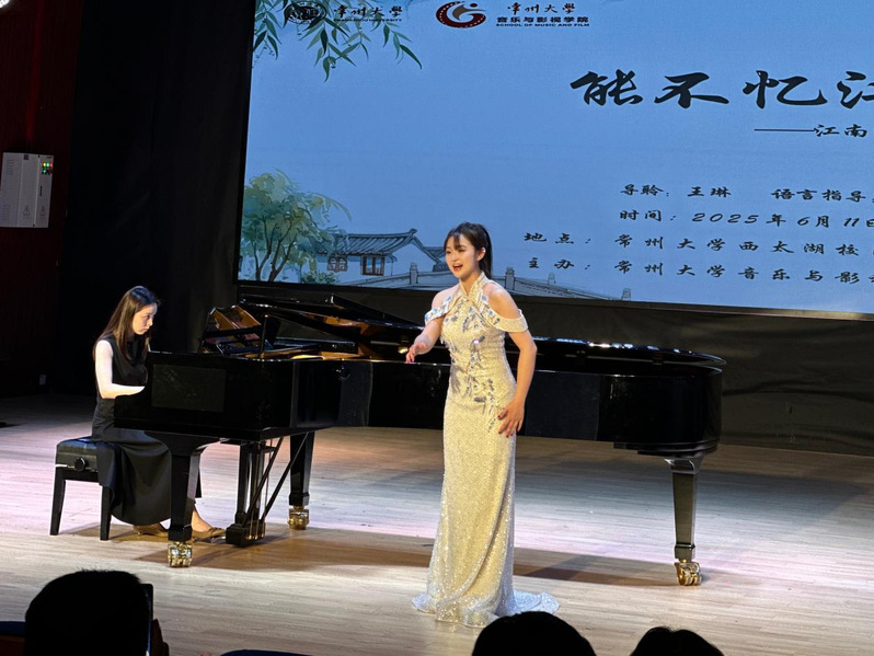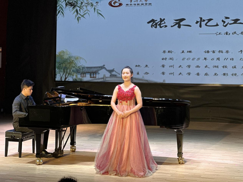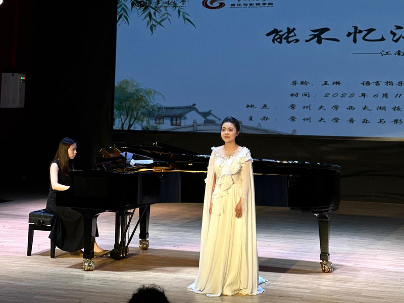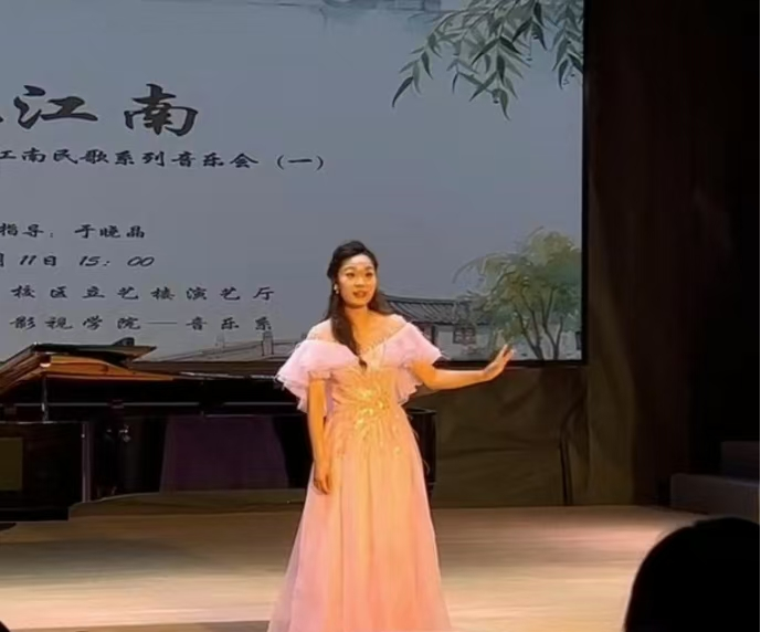 音乐会由王琳老师担任导聆,于晓晶老师进行语言指导,动漫花园 2022级、2023级、2024级民族声乐表演方向的7位硕士研究生现场演绎了《无锡景》《四季歌》《紫竹调》《姑苏风光》等14首经典江南民歌。通过这些旋律,我们得以窥见江南水乡的自然风貌、风土人情以及世代相传的生活智慧与审美情趣。音乐会是动漫花园 音乐硕士民族声乐方向教学成果的一次重要展示,同学们的精彩演绎,既是对传统民歌艺术的致敬,也是一次当代青年对本土文化的积极探索与再创造。