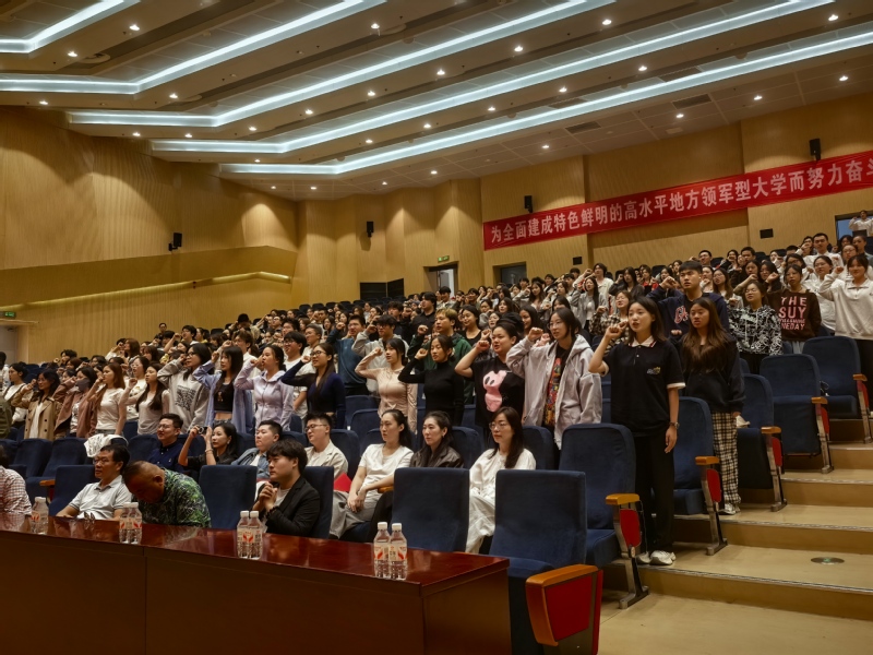 在激昂的氛围中,典礼进入了最神圣的环节——新生宣誓仪式。全体2025级新生肃立,举起右拳,以青春的名义庄严宣誓,铿锵誓言回荡在礼堂,彰显了新一代音影人的使命感与责任感。