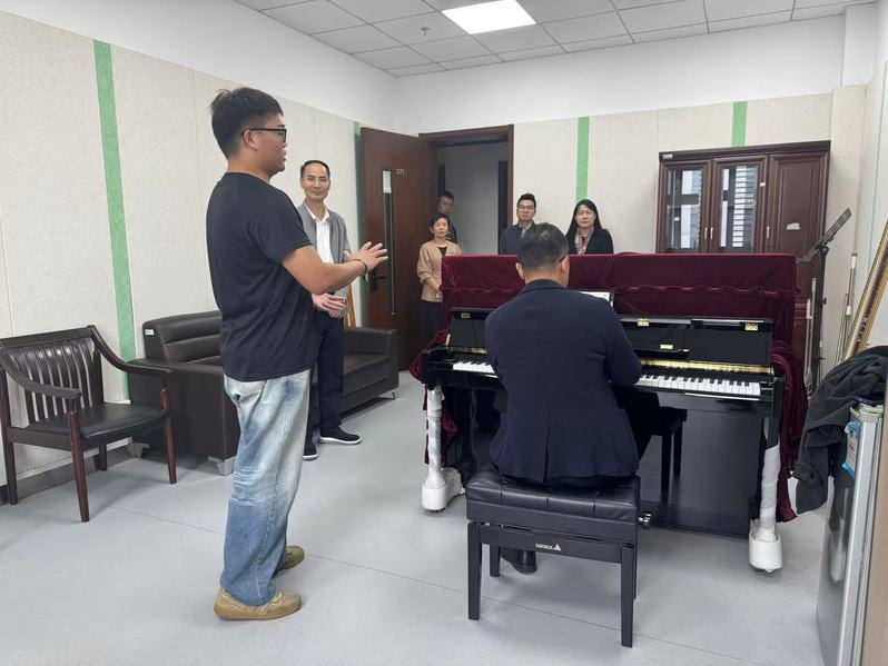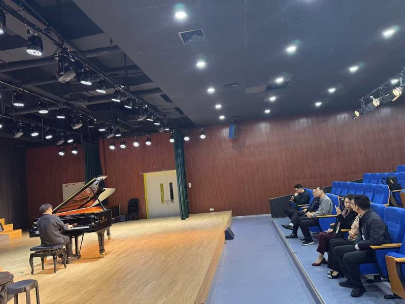 考查期间,专家组按照文科专业认证标准对音乐学专业建设情况进行了全面考查,走访器乐排练室、琴房、演艺厅,并通过现场访谈的方式约访了教学管理人员5人、公共基础课和音乐学专业教师8人、音乐学专业4个年级在校生20人。同时还调阅了近三年期末试卷、毕业论文、毕业实习等资料。