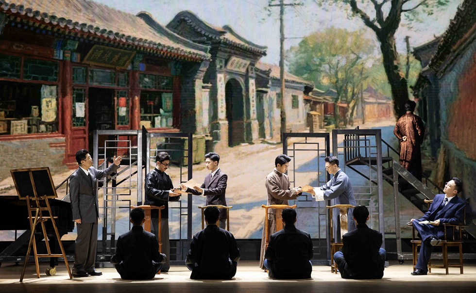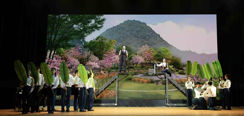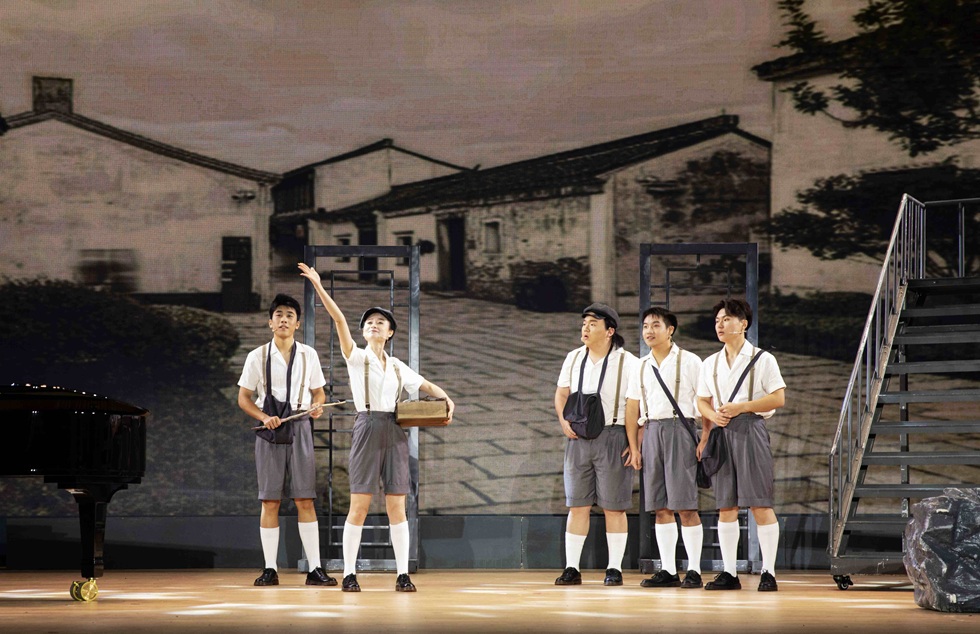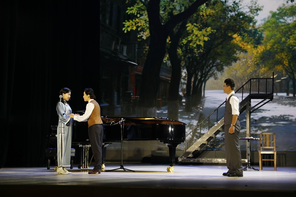 仪式结束后,现场嘉宾观众共同欣赏了由赵元任音乐与戏剧动漫花园 师生共同演绎的原创音乐戏剧《教我如何不想她》。全剧围绕四重“想她”的情感主线,层层铺展一代学人的生命历程与家国情怀,精湛的演技流露出真挚而细腻的情感,交织出一幅跨越时间与地域的生命画卷,也映照出一代知识分子在时代洪流中的情感世界与精神归途。这是一场融合艺术审美、思想引领与文脉焕新的艺术盛宴,更是一次对赵元任先生学术风骨与人文精神的深情致敬。剧目以音乐为脉、以戏剧为体,将语言、旋律与舞台意象有机融合,既彰显了常州地域文化的深厚底蕴和文化影响力,又展现了我校艺术创作的创新活力和价值定位,使观众在沉浸式的审美体验中感受历史温度、思想深度与情感厚度,进一步擦亮了“常州˙教我如何不想她”城市名片。演出结束后,现场掌声经久不息。