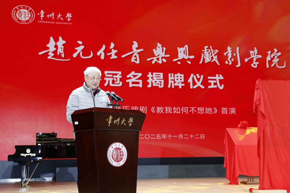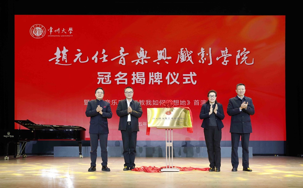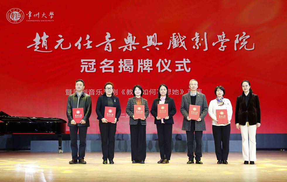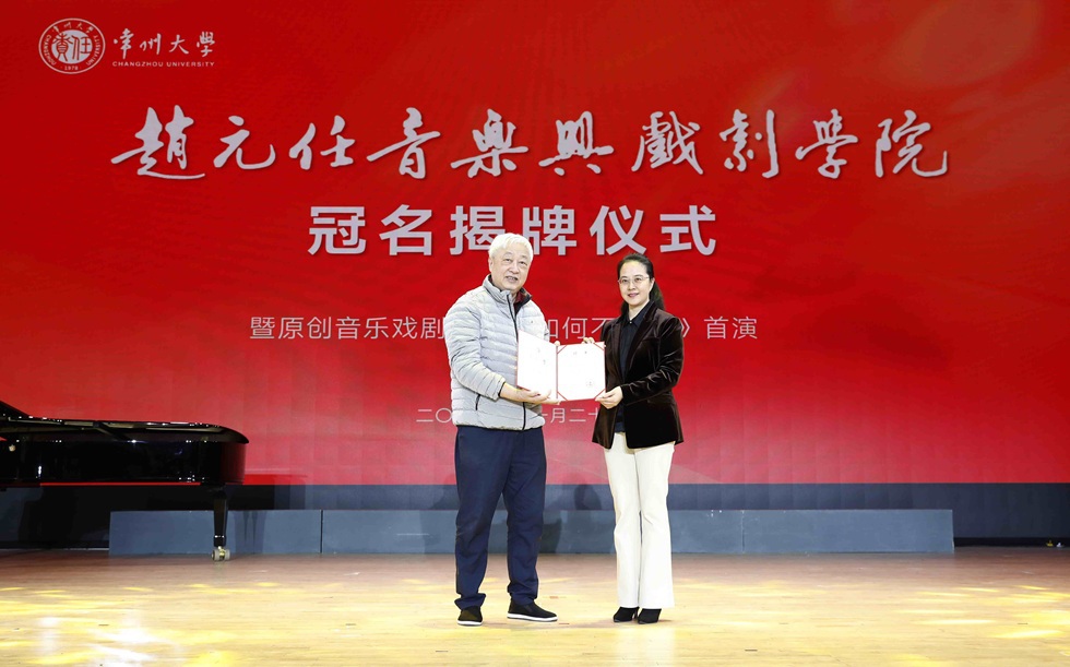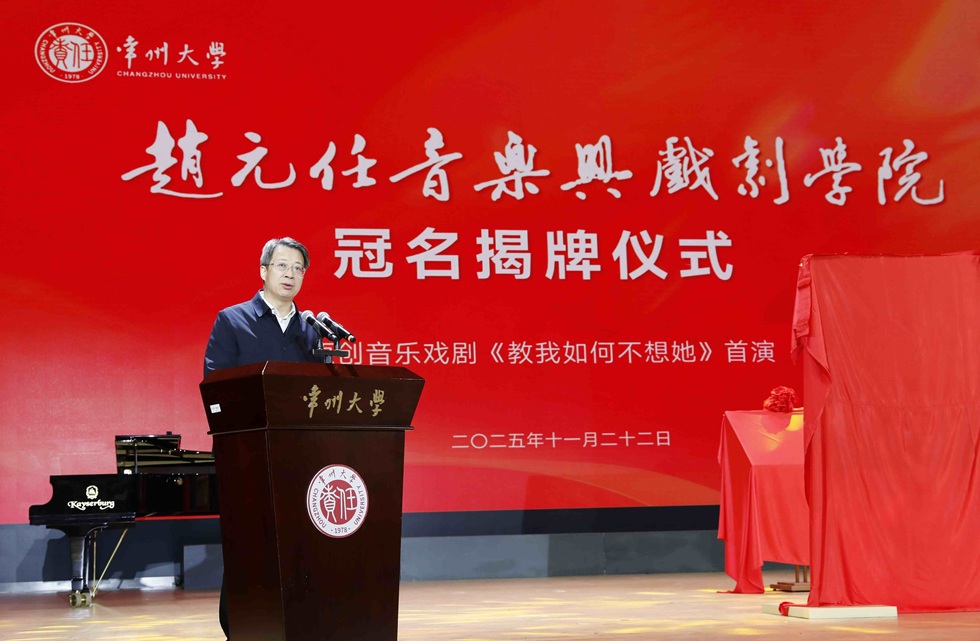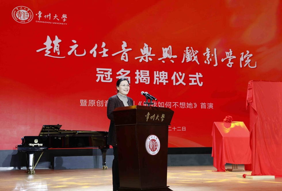 11月22日,赵元任音乐与戏剧动漫花园 冠名揭牌仪式暨原创音乐戏剧《教我如何不想她》首演在西太湖校区礼堂举行。赵元任先生外孙黄家林教授,常州市委常委、宣传部长陈志良,江苏省教育厅体卫艺处处长王红蕾,清华大学艺术教育中心主任赵洪,常州市委宣传部副部长谢春林,常州市文学艺术界联合会党组书记、主席沈玉俊,常州市委宣传部办公室主任魏火军,江苏晋陵文旅发展集团有限公司董事长苏刚,内蒙古自治区教育厅美育指导委员会秘书长张卉,上海市学校体育与艺术发展评估中心常务副主任张欢,动漫花园 党委书记徐守坤,动漫花园 党委副书记黄海燕,动漫花园 党委常委、副校长杨琳出席仪式,常州市和武进区相关部门领导、上海音乐动漫花园 及省内兄弟院校音乐动漫花园 的领导和专家、学校相关职能部门和相关动漫花园 领导、赵元任音乐与戏剧动漫花园 全体师生等齐聚一堂,共同见证这一重要时刻。仪式由校党委副书记黄海燕主持。