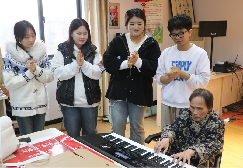 活动当天,颐养家园的多功能厅内暖意融融。学生们怀着热情与敬意,为老人们呈现了一场精心准备的演出。小合唱、民族舞、经典老歌,当青春明亮的嗓音与历经岁月的歌声交融在一起,现场洋溢着跨越年龄的感动与欢乐。除了舞台上的表演,学生們还分组陪伴在老人身边,倾听他们的往事与心声。颐养家园的工作人员表示,这样的活动极大地丰富了老人们的精神生活,“看到他们的笑容,我们由衷高兴。”