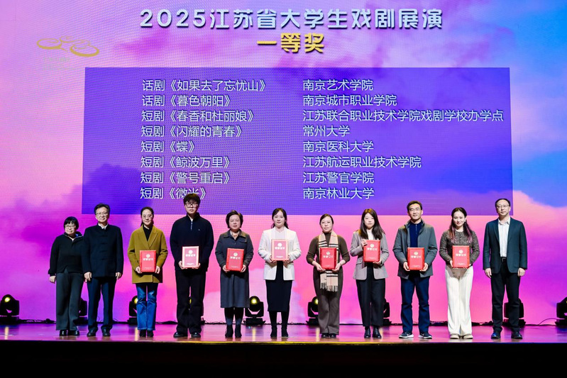 据悉,为让大戏展的优秀作品被更多大学生看到并欣赏,本年度获得特等奖、一等奖及部分二等奖的作品将纳入2026年度江苏省“高雅艺术进校园”节目库,从而获得更多展演机会。明年春天,还将举办大戏展优秀剧目展演周,开展专场展演、主题沙龙、高校戏剧社团巡礼等活动,让所有热爱戏剧的心灵同频共振。(通讯员/张欢欢 审核/赵一兆)