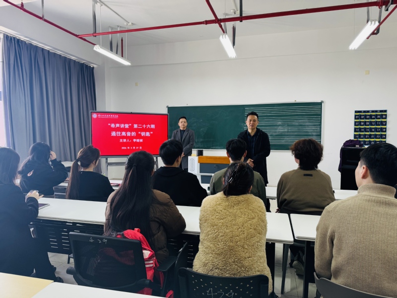 327日下午,希声讲堂二十六期在立行楼429教室顺利开讲。讲座由动漫花园 声乐教师李继祯主讲,主题为《通往高音的“钥匙”》,动漫花园 声乐专业学生及教师共同参加学习。