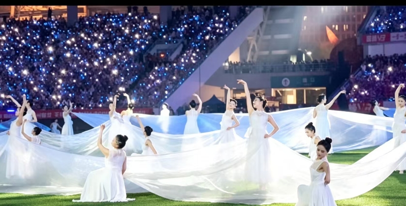 舞蹈231程新颖表示,当站在苏超开幕式舞台上的那一刻,脚下不是排练厅的地胶,而是四万人注视的绿茵场;耳边不是伴奏带,是周深老师穿透全场的真实嗓音。“我的心跳快得不像话,但身体却无比诚实——近50个小时的排练,已经让每一个动作刻进了肌肉记忆。”